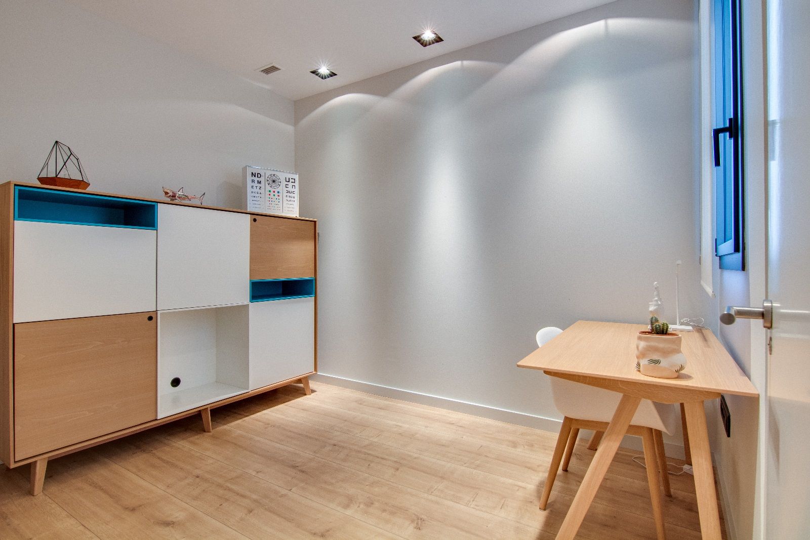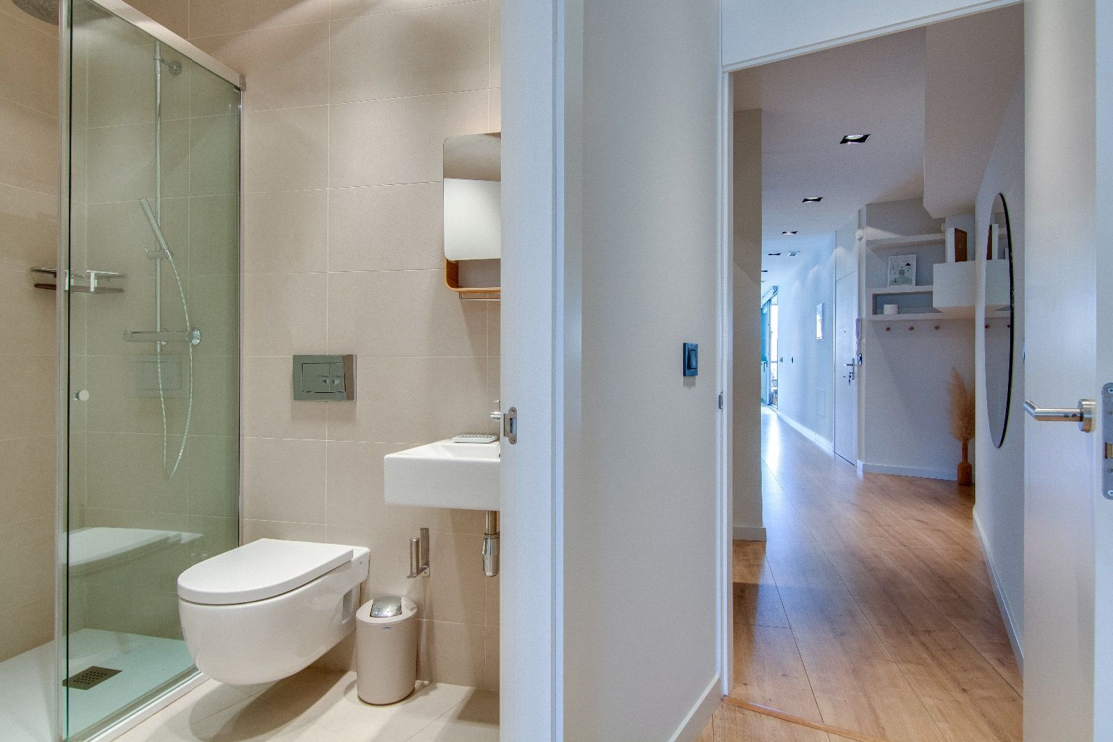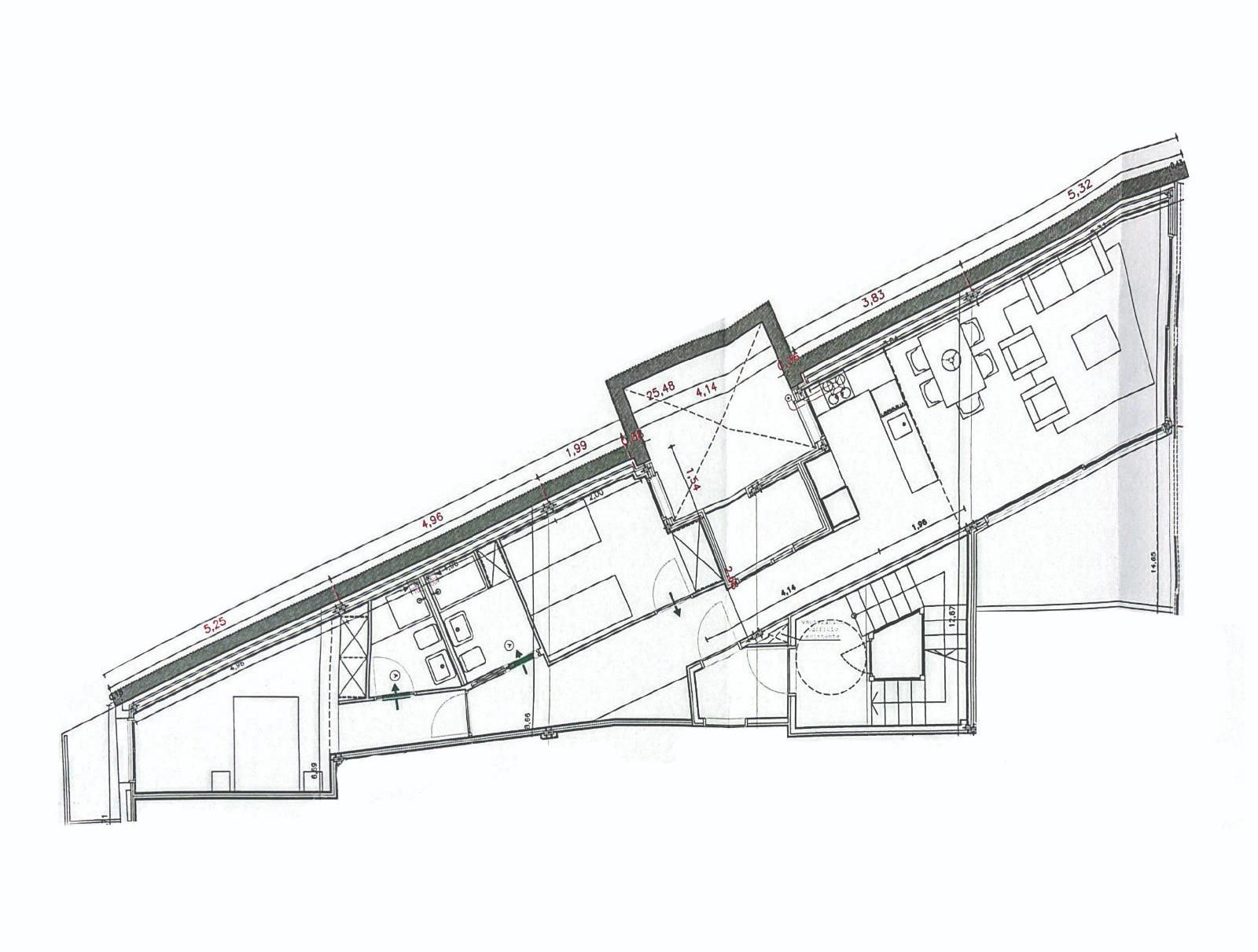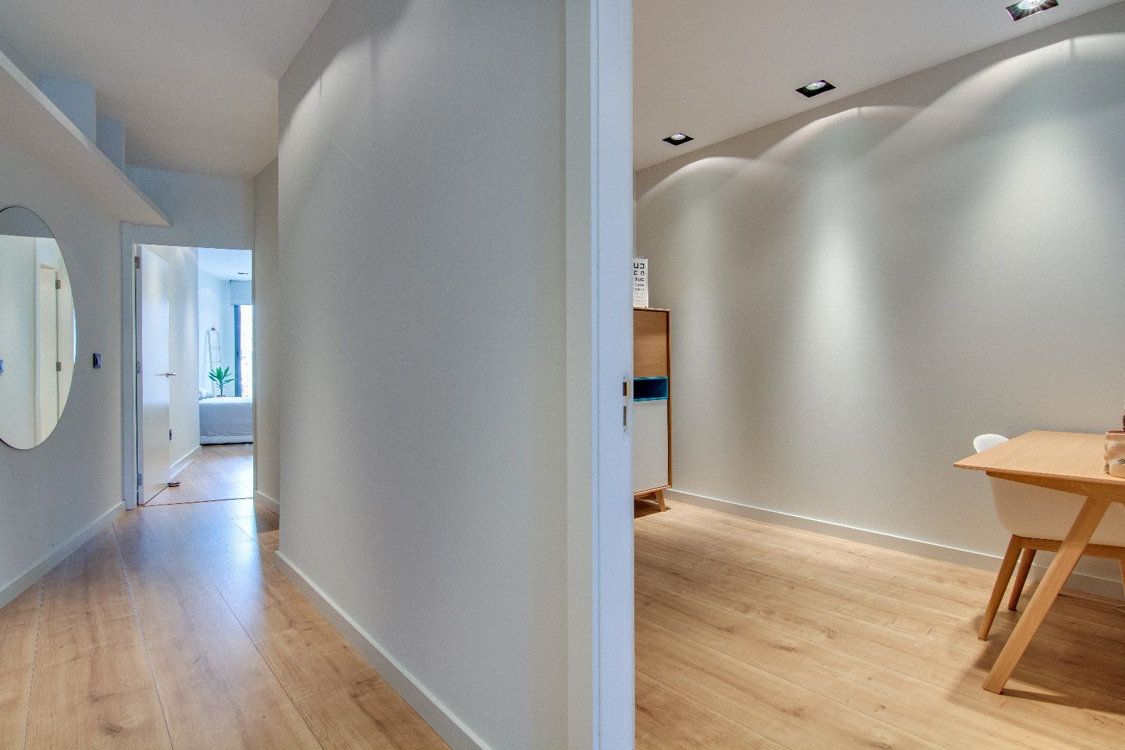 L'àtic té una distribució molt còmoda, diferenciant l'àrea social de la privada. D'una banda les dues habitacions dobles, totes dues amb armaris de paret, llum i ventilació exterior. La principal és una suite, amb mobles a mesura, bany amb dutxa i sortida a un assolellat balcó a pati de poma. La segona habitació doble està preparada com a despatx i és perfecta per a rebre visites eventuals ja que hi ha espai suficient fins i tot per a un llit doble. Un segon bany complet serveix per a les visites puntuals i els hostes.