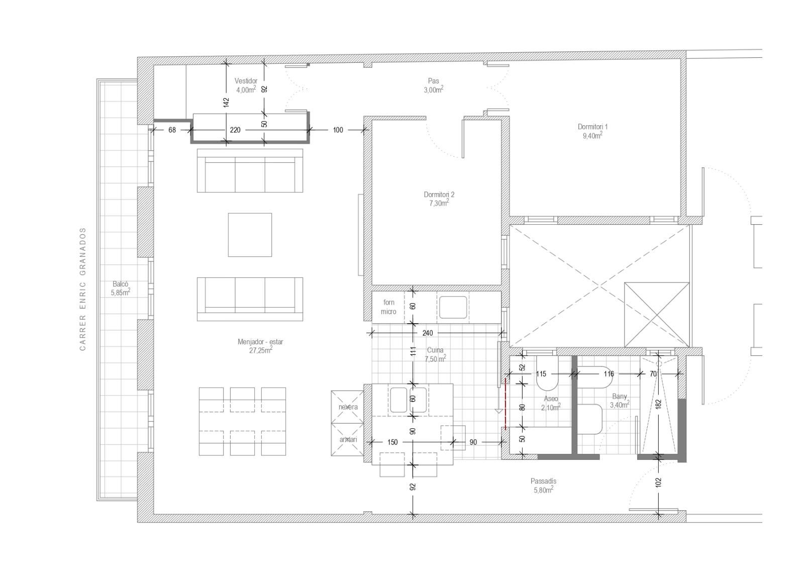 Estupenda vivienda totalmente reformada en la parte alta del Ensanche Izquierdo, en una de las calles con más encanto de la ciudad: Enric Granados. Se trata de un piso en planta principal de 75 mts, restaurado conservando los detalles arquitectónicos clásicos y llenos de encanto como los techos altos de vuelta catalana, los suelos hidráulicos, las paredes de ladrillo visto y adecuándolo a las necesidades actuales como la moderna climatización de aire acondicionado y calefacción por conducto. El piso se distribuye en dos habitaciones dobles interiores, un cómodo vestidor, un baño completo con plato de ducha, un aseo donde también se aloja la lavadora, una estupenda cocina abierta y un luminoso salón comedor con ventanales a la calle y acceso a un balcón con bonitas vistas a la calle. Preciosa finca modernista con ascensor en inmejorable localización, rodeado de todo tipo de servicios, transportes y opciones recreativas.