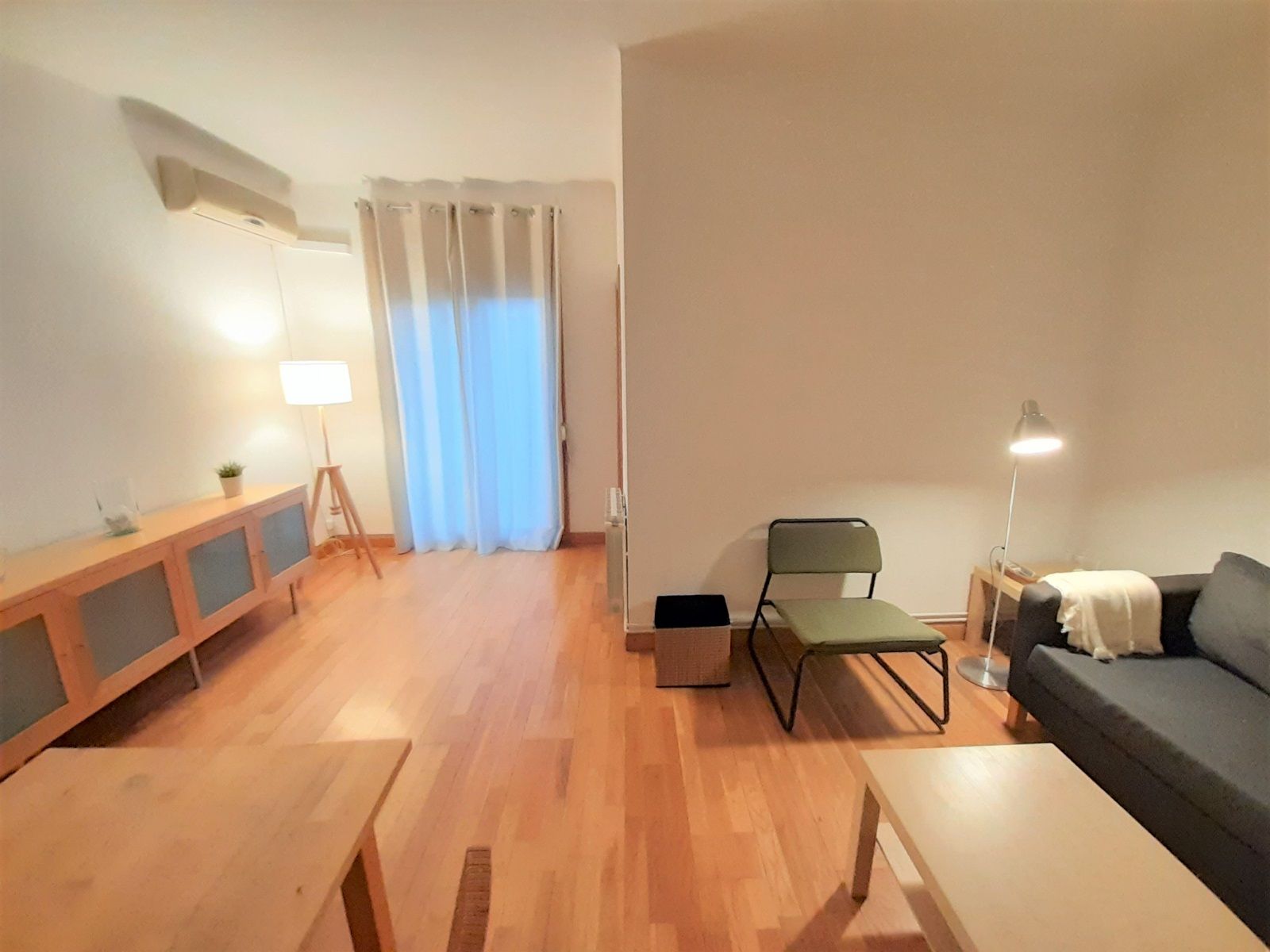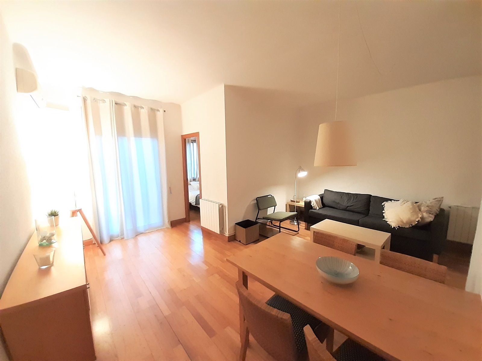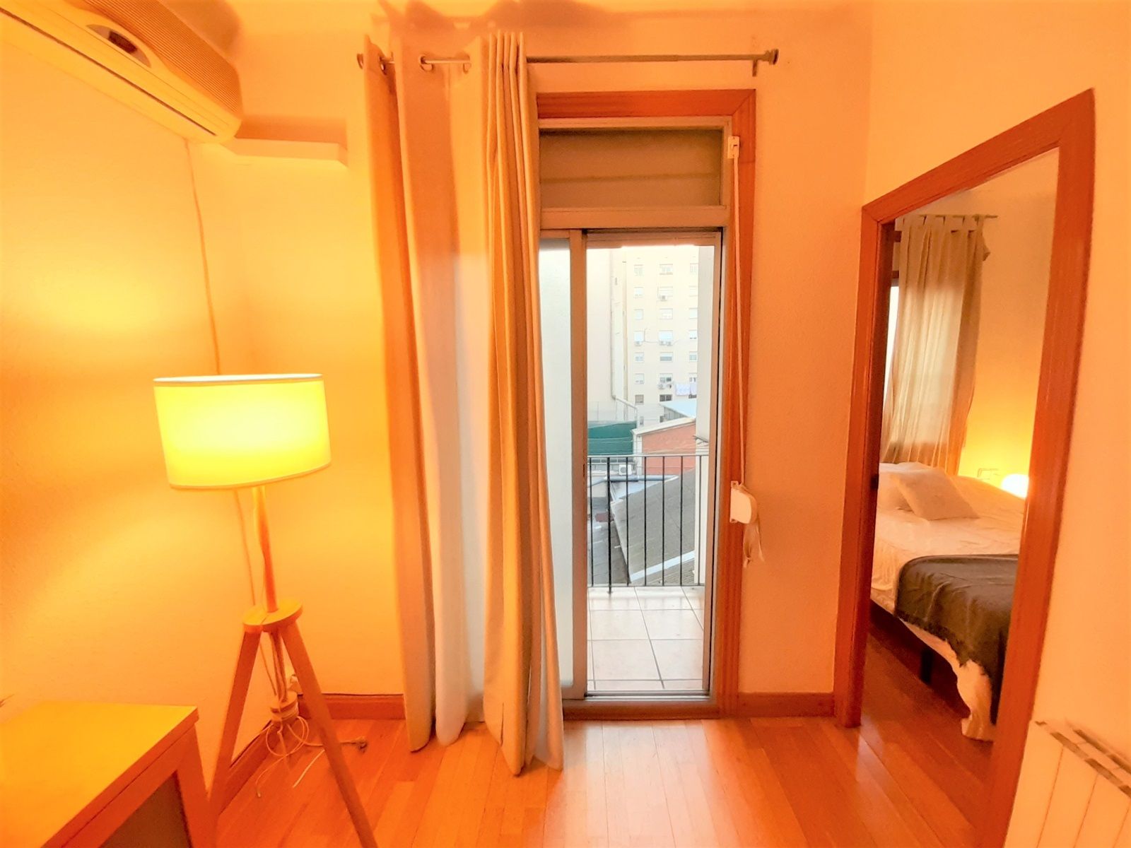 Estupenda vivienda totalmente amueblada y equipada de 61 metros, a pasos del Hospital Sant Pau. Se trata de un piso de 2 habitaciones dobles, una de ellas exterior con un gran armario con puerta de espejos y la otra interior, también con armario y espacio de almacenaje, ubicadas en los extremos del piso. La vivienda dispone de un baño completo, cocina totalmente equipada con todos los electrodomésticos, menaje básico y una pequeña zona office y un amplio salón comedor muy bien distribuido, con acceso a un pequeño lavadero por un lado y a un balconcito por otro. El piso se desarrolla a través de un pasillo distribuidor con una práctica zona de recibidor con armario. Además dispone de calefacción por radiadores y aire acondicionado en el salón comedor. La finca, que está bien mantenida, dispone de ascensor desde el entresuelo y las escaleras iniciales disponen de elevador o plataforma salvaescaleras.