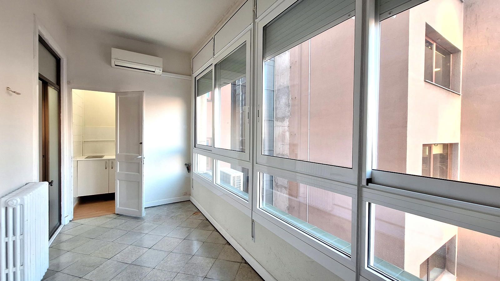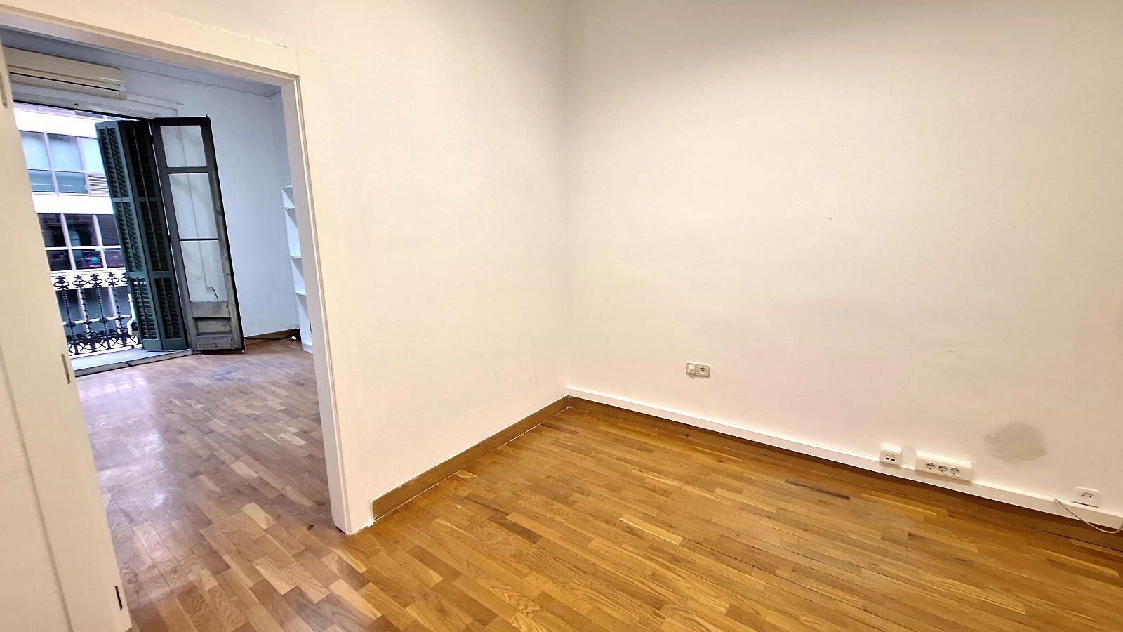 La vivienda dispone de 165 m² útiles y cuenta con cinco dormitorios: dos dobles exteriores, uno de ellos con vestidor, dos dobles interiores y un dormitorio individual. Además, incluye una habitación adicional ideal como despacho o vestidor, un trastero, dos salas que permiten crear un salón y un comedor diferenciados, una cocina independiente pequeña pero funcional, un baño con plato de ducha y amplio recibidor. También ofrece un espacio que funciona como terraza cubierta con vistas al patio de manzana y un balcón con salida a la calle Balmes.