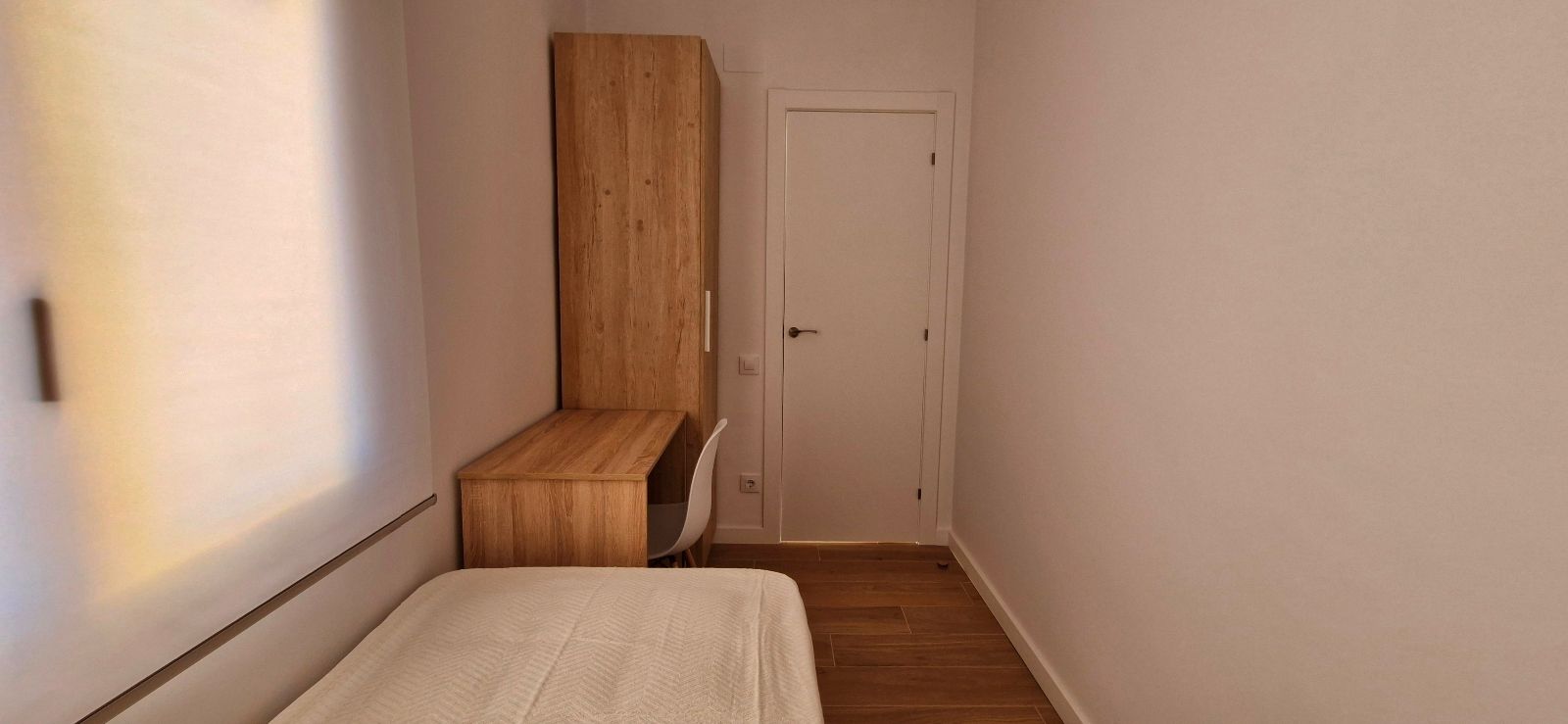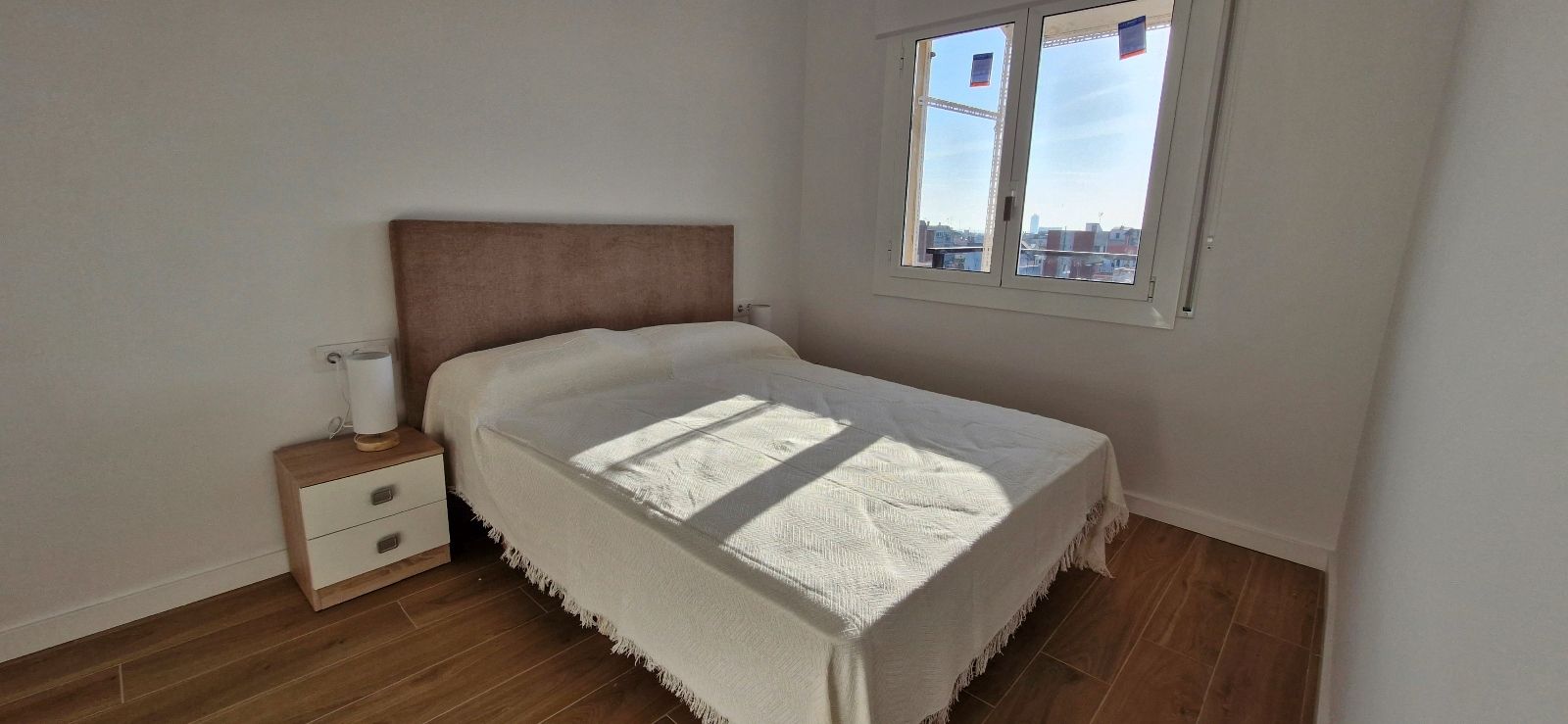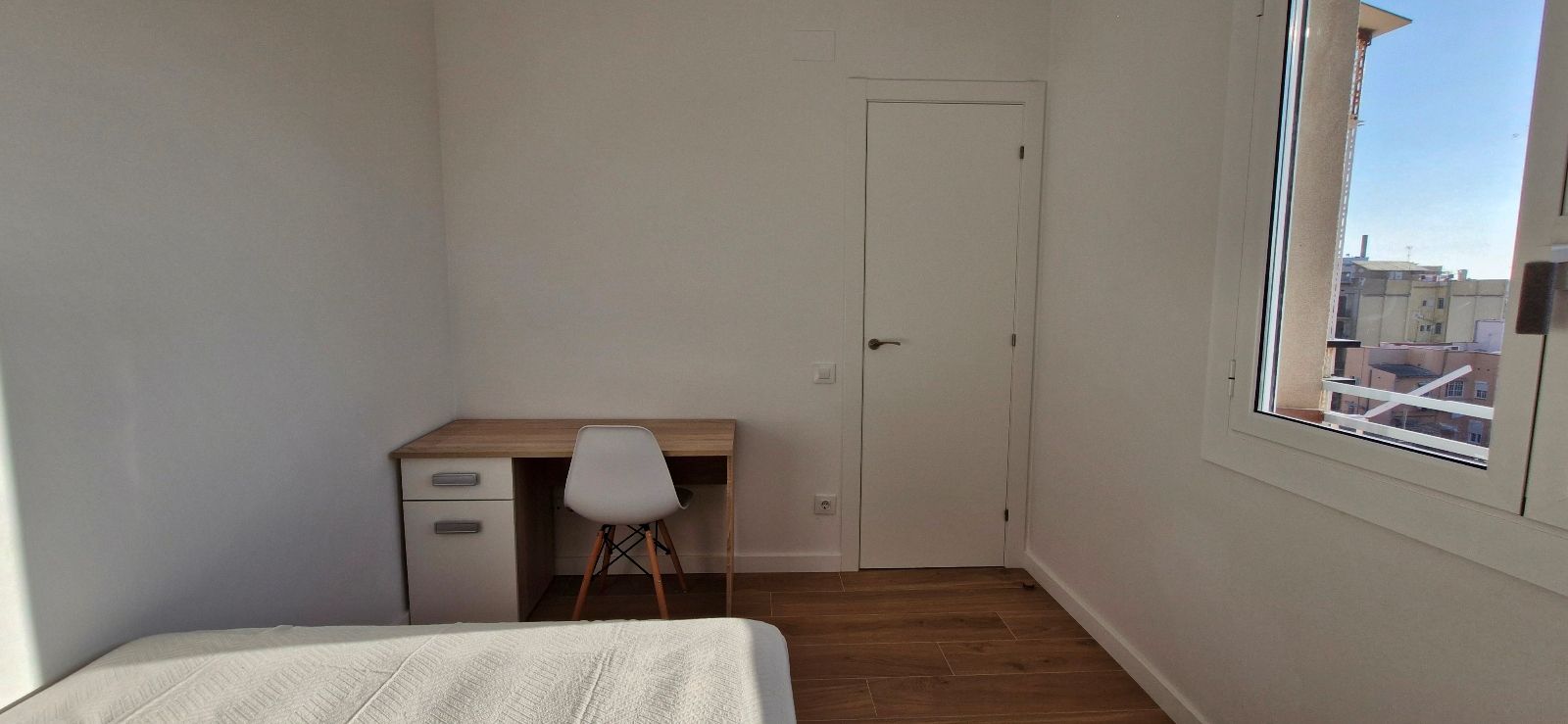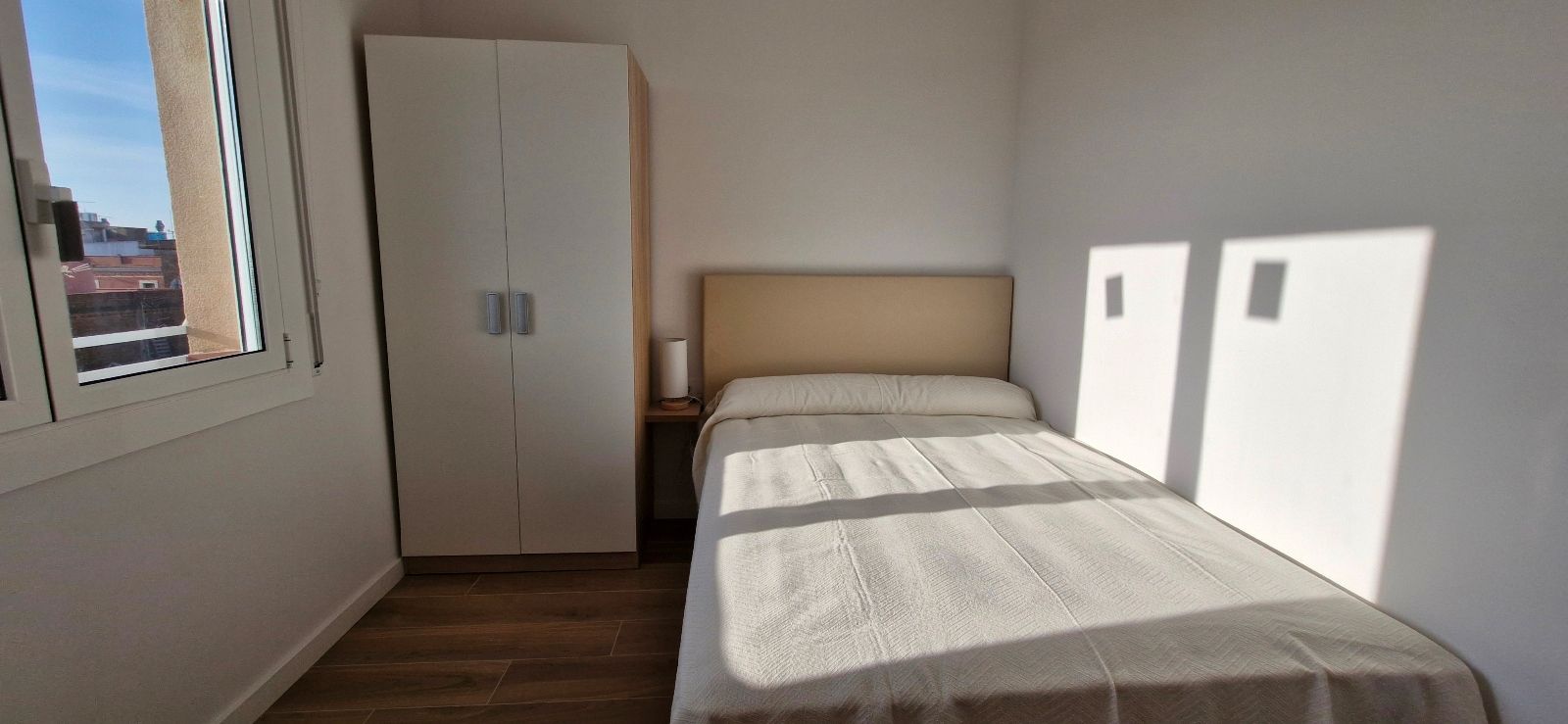 3 dormitorios: 2 dormitorios dobles con cama de matrimonio y 1 dormitorio individual, todas con armarios y 2 de ellas con escritorio, salón comedor totalmente equipado, 1 baño con plato de ducha, cocina equipada con electrodomésticos, terraza balcón con amplias vistas a la ciudad y sol de mañanas.