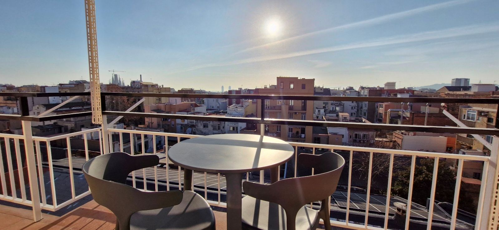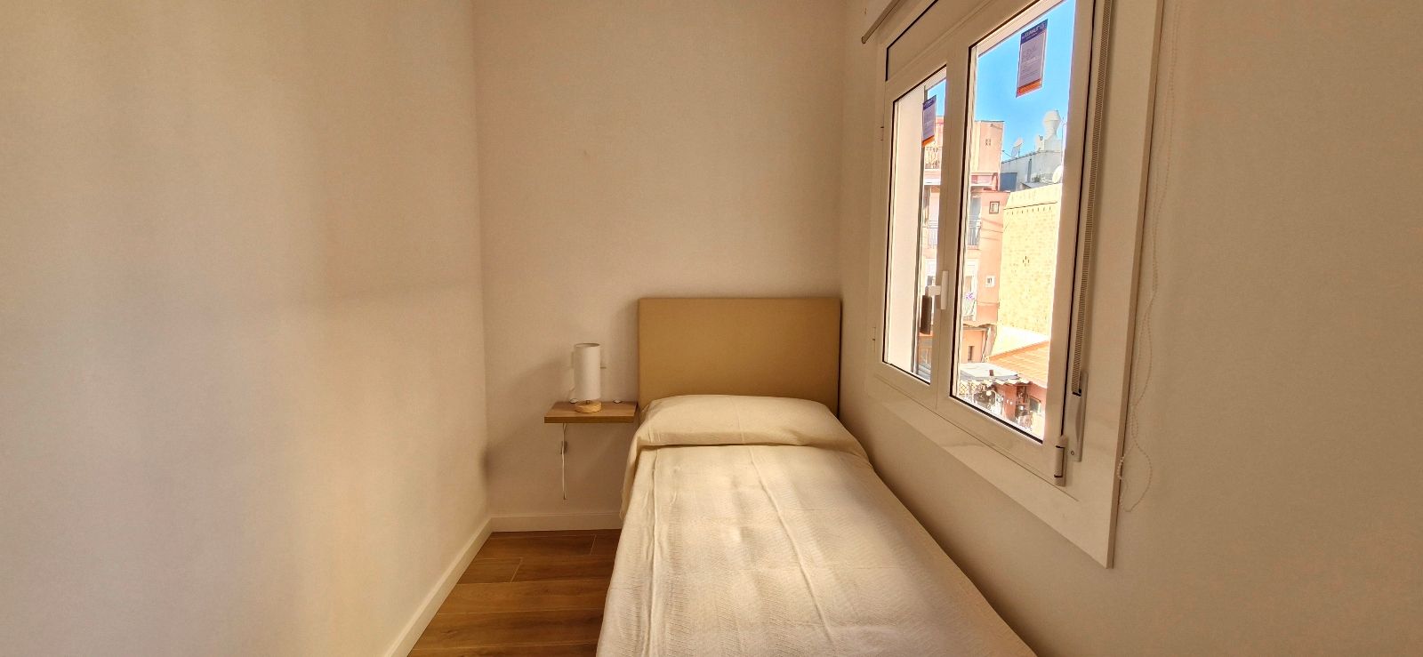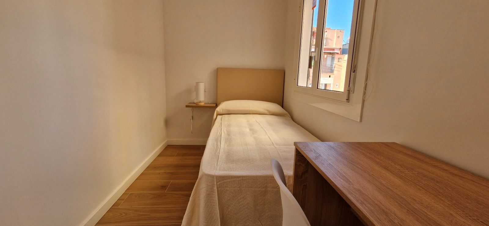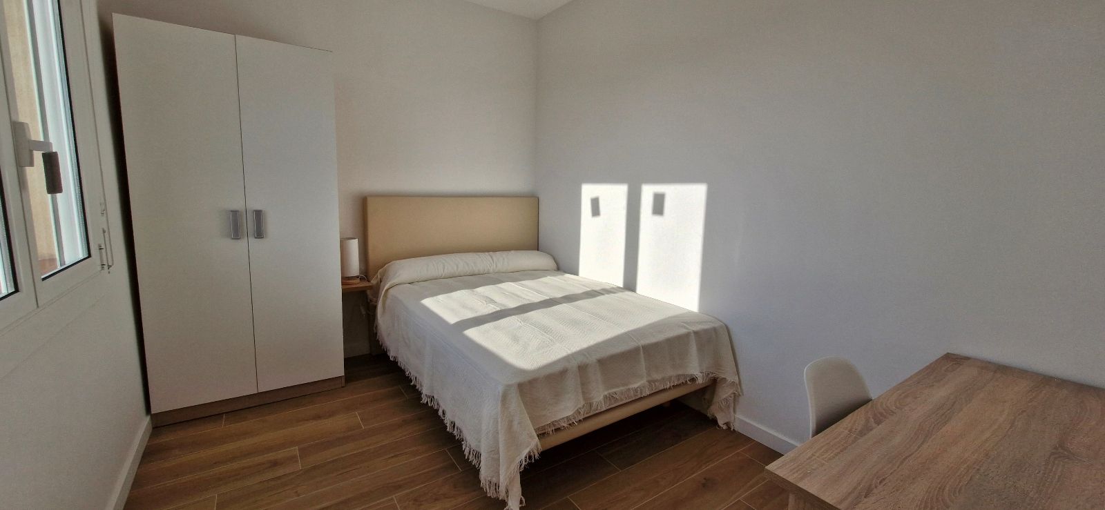 3 dormitorios: 2 dormitorios dobles con cama de matrimonio y 1 dormitorio individual, todas con armarios y 2 de ellas con escritorio, salón comedor totalmente equipado, 1 baño con plato de ducha, cocina equipada con electrodomésticos, terraza balcón con amplias vistas a la ciudad y sol de mañanas.