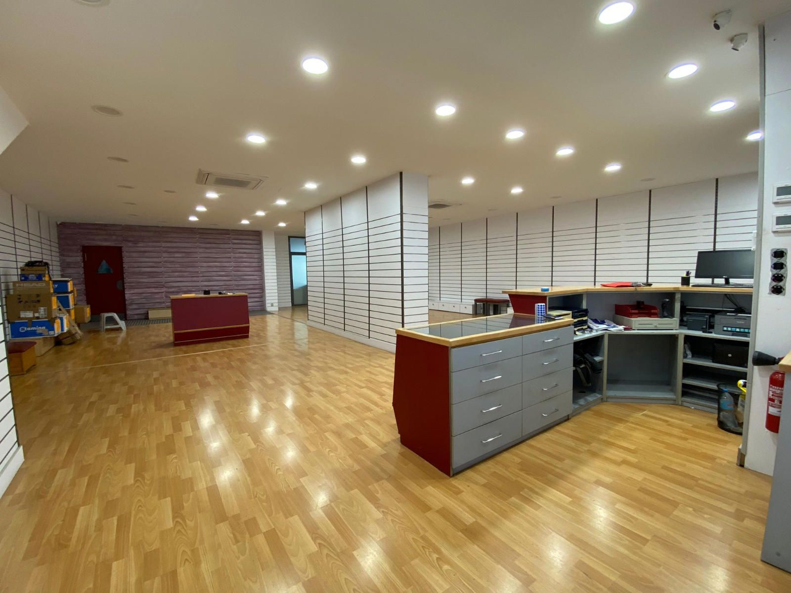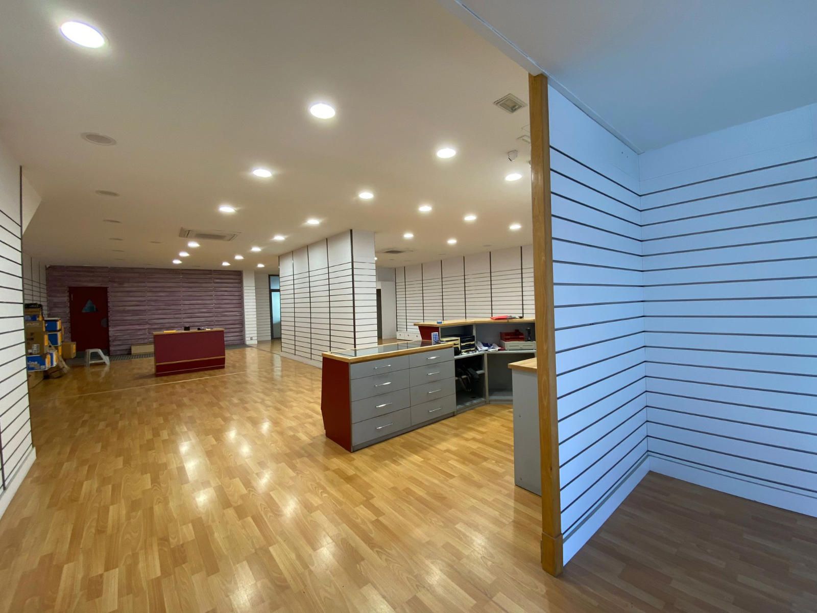 Sala diáfana semi dividida por pared central y varias estancias, actualmente zona de office, de archivo y oficina.