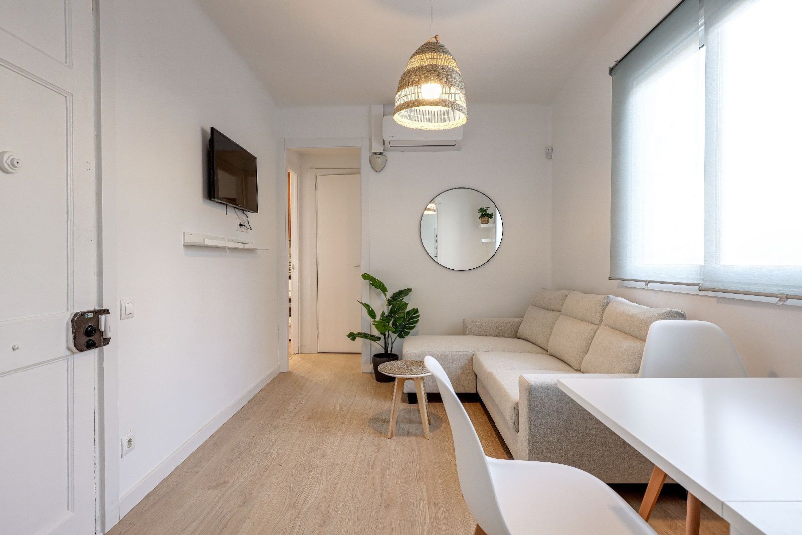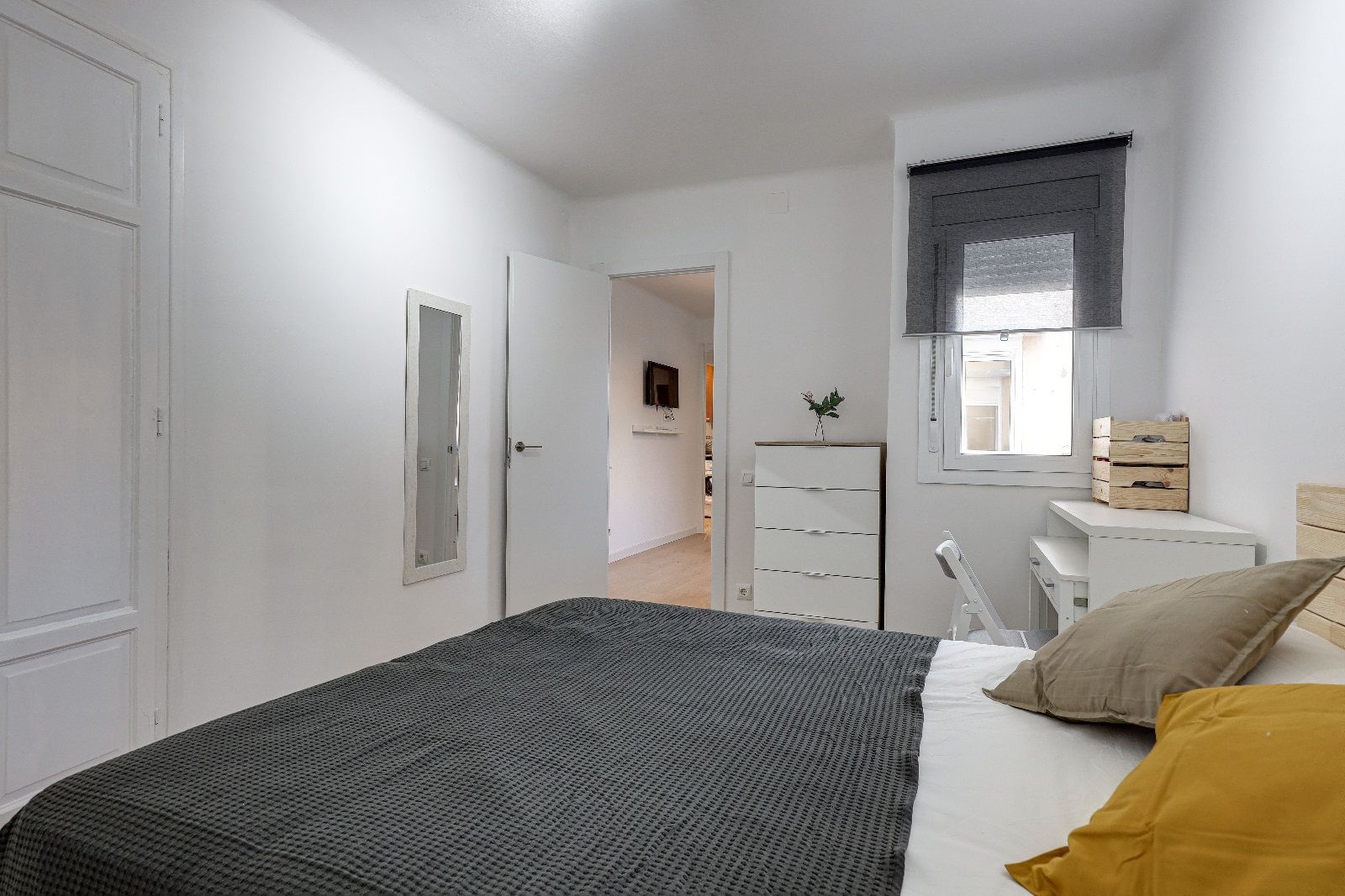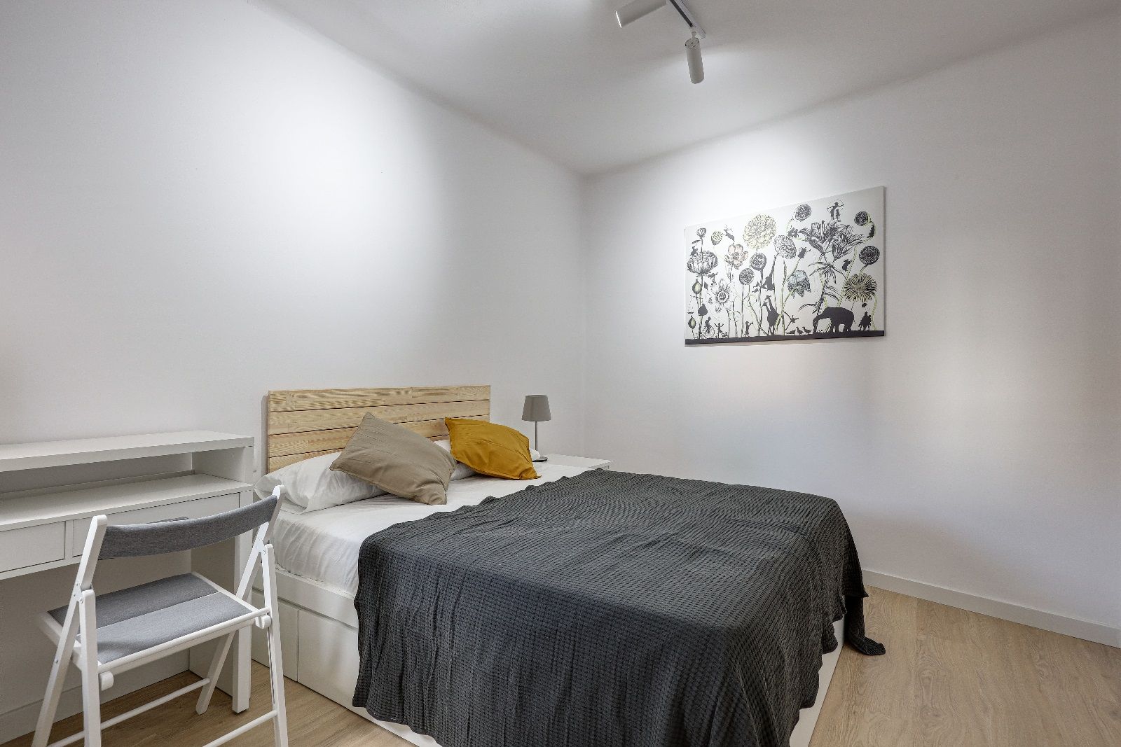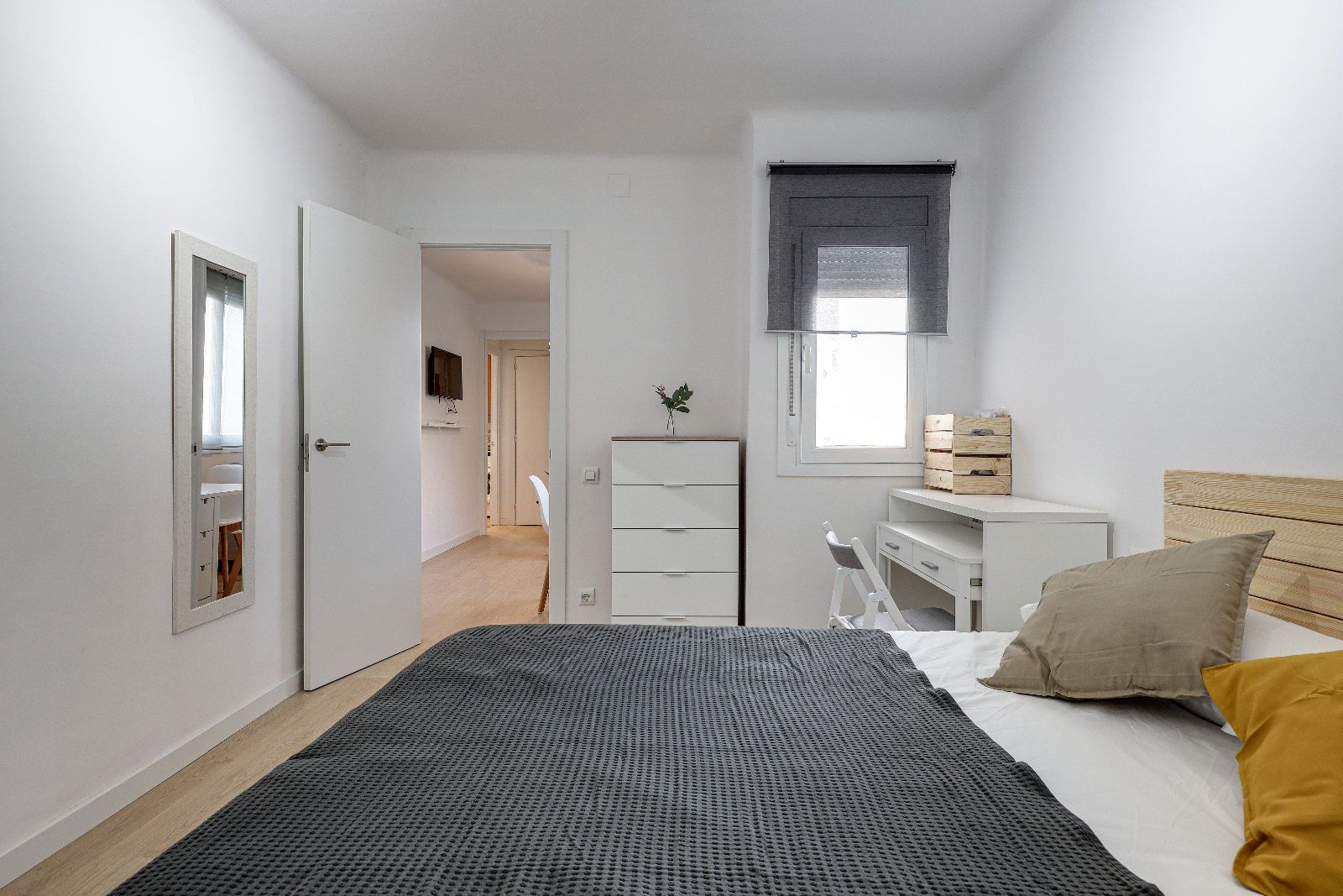 Goya - Plaza Pirineos: Grand appartement qui vient d'être entièrement rénové, avec une cuisine entièrement équipée avec appareils électriques et ustensiles de cuisine de base, une salle de bain complète avec douche, un salon-salle à manger lumineux et deux chambres doubles, toutes deux avec placards, une dont plus grande et avec coin bureau. La maison est entièrement meublée avec une grande fonctionnalité et une esthétique moderne très confortable. Il dispose d'une télévision et de la climatisation / pompe à chaleur et de parquet. L'immeuble est situé dans une rue très calme, à quelques pas d'une petite place bordée d'arbres et à quelques pas du métro Badal. Toutes sortes de services et de transport dans le quartier. Excellente opportunité de partager, pour les couples ou pour les célibataires.