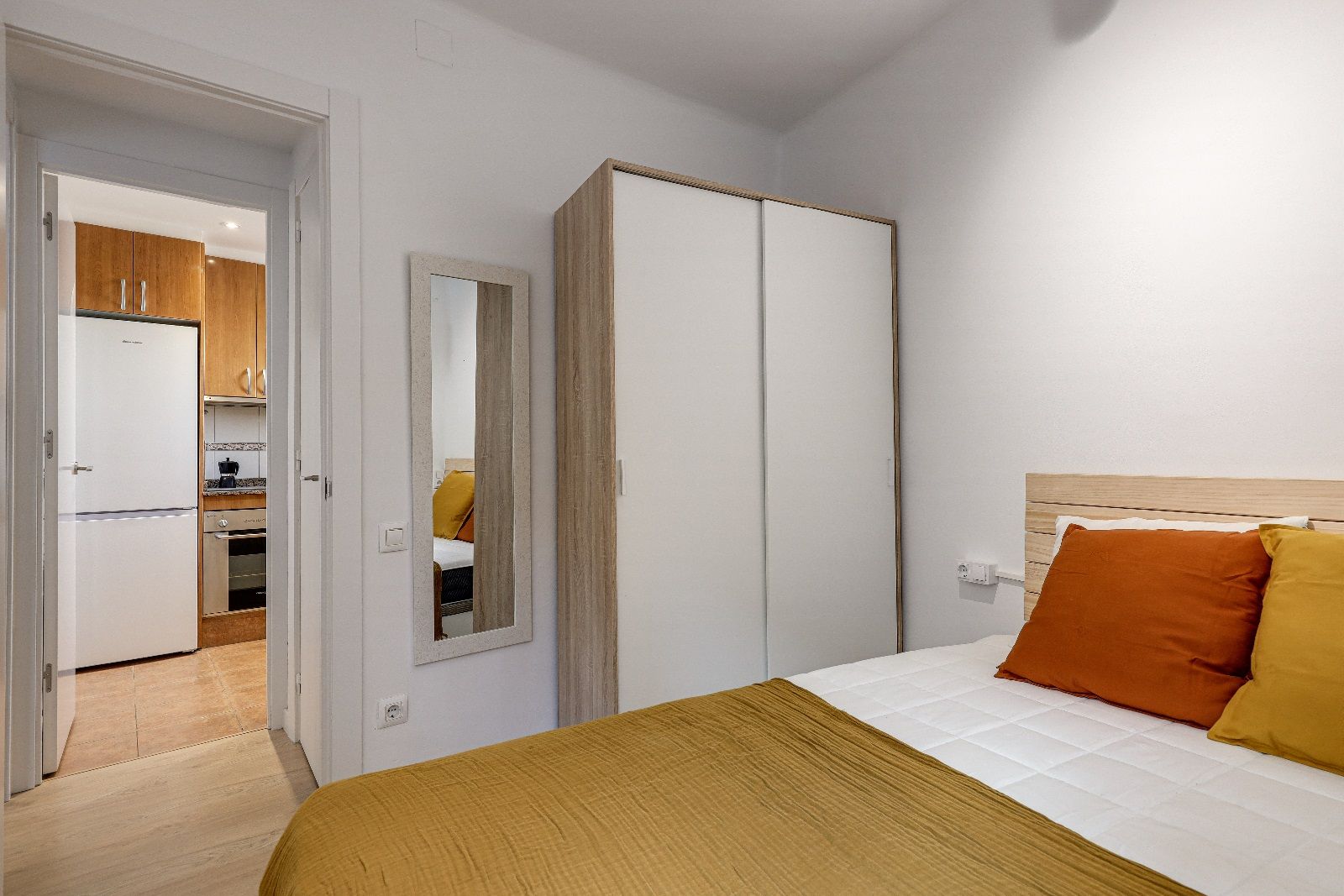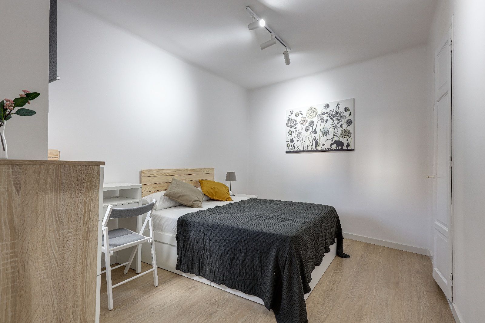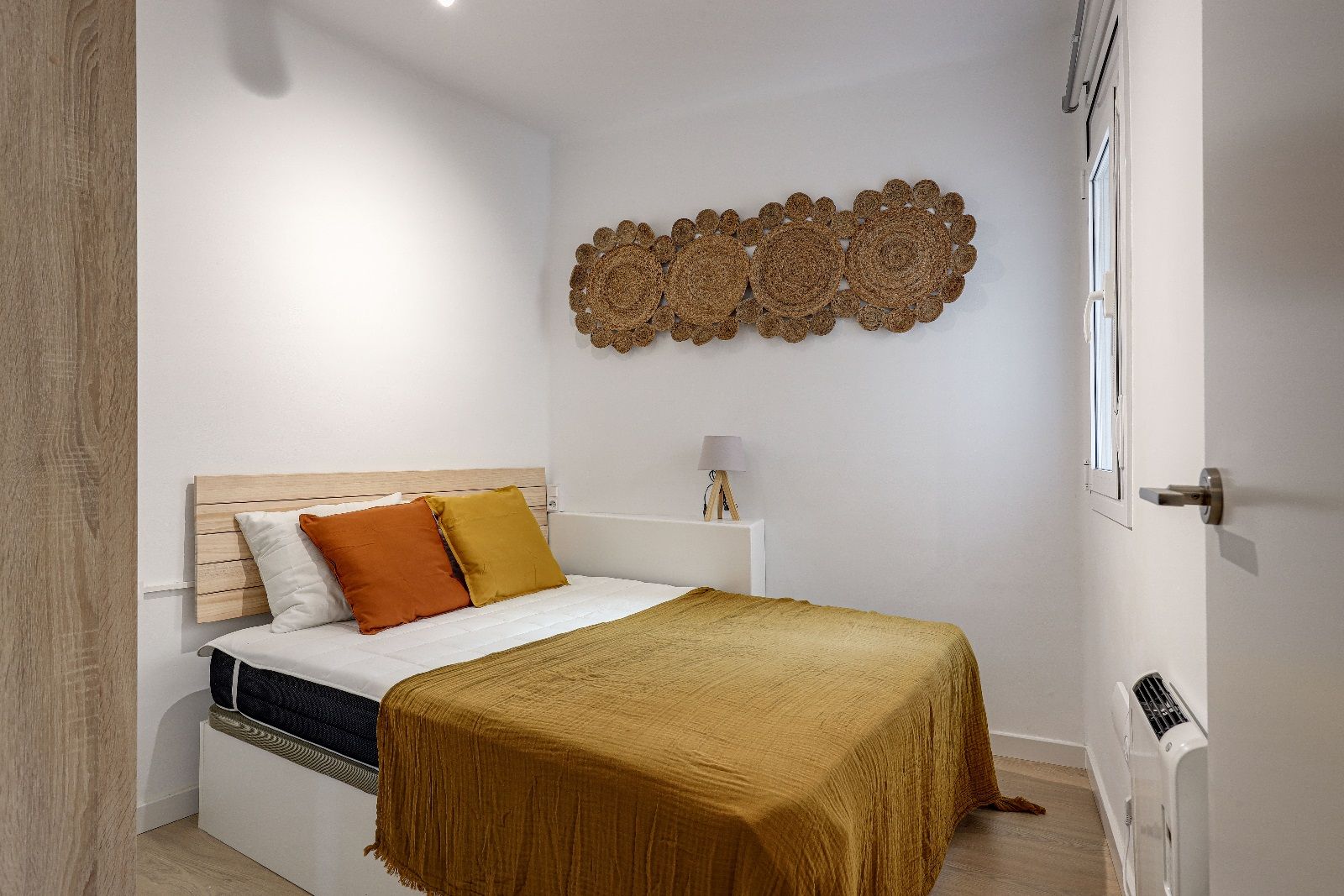 Goya - Plaza Pirineos: Grand appartement qui vient d'être entièrement rénové, avec une cuisine entièrement équipée avec appareils électriques et ustensiles de cuisine de base, une salle de bain complète avec douche, un salon-salle à manger lumineux et deux chambres doubles, toutes deux avec placards, une dont plus grande et avec coin bureau. La maison est entièrement meublée avec une grande fonctionnalité et une esthétique moderne très confortable. Il dispose d'une télévision et de la climatisation / pompe à chaleur et de parquet. L'immeuble est situé dans une rue très calme, à quelques pas d'une petite place bordée d'arbres et à quelques pas du métro Badal. Toutes sortes de services et de transport dans le quartier. Excellente opportunité de partager, pour les couples ou pour les célibataires.