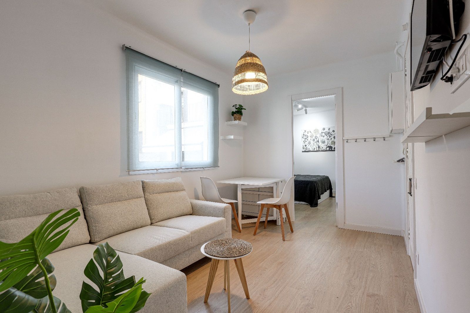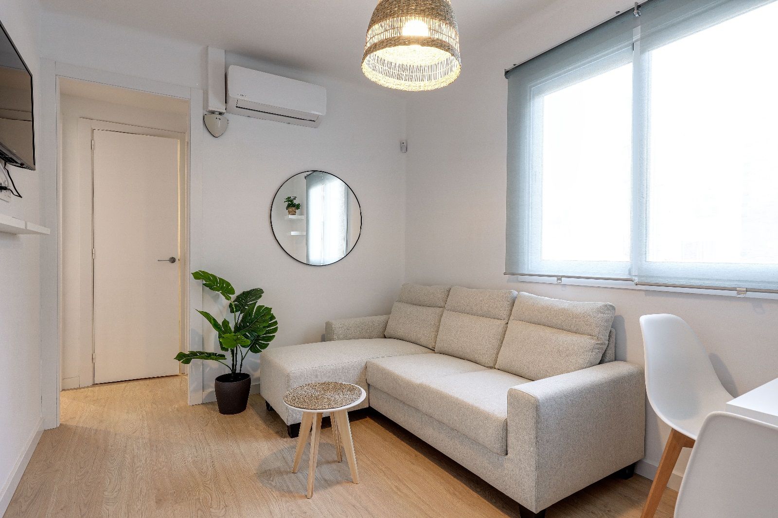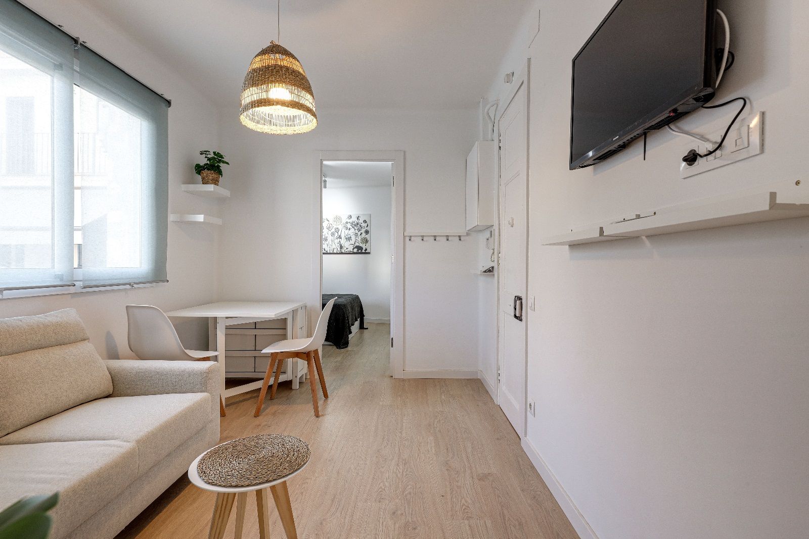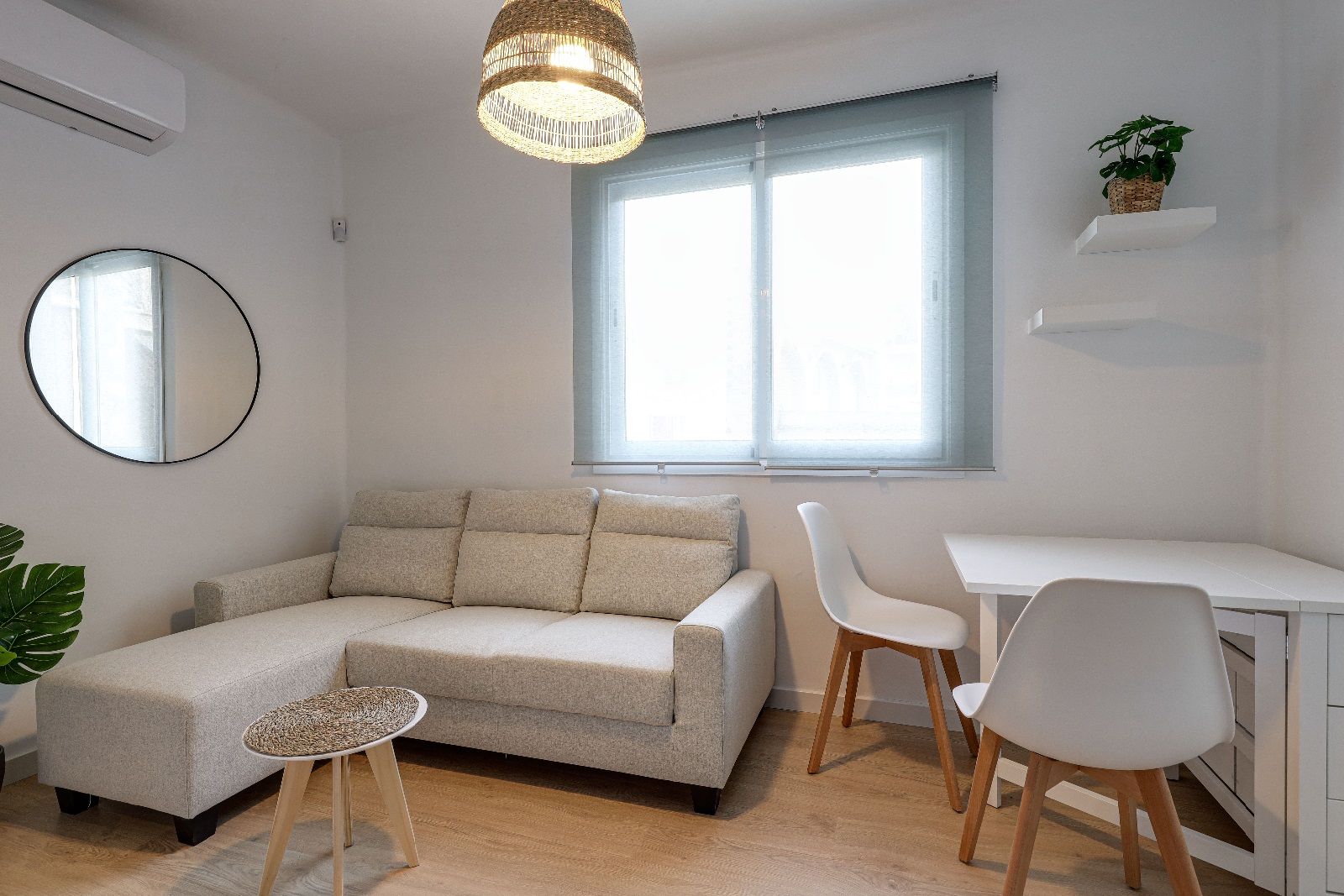 Goya - Plaza Pirineos: Grand appartement qui vient d'être entièrement rénové, avec une cuisine entièrement équipée avec appareils électriques et ustensiles de cuisine de base, une salle de bain complète avec douche, un salon-salle à manger lumineux et deux chambres doubles, toutes deux avec placards, une dont plus grande et avec coin bureau. La maison est entièrement meublée avec une grande fonctionnalité et une esthétique moderne très confortable. Il dispose d'une télévision et de la climatisation / pompe à chaleur et de parquet. L'immeuble est situé dans une rue très calme, à quelques pas d'une petite place bordée d'arbres et à quelques pas du métro Badal. Toutes sortes de services et de transport dans le quartier. Excellente opportunité de partager, pour les couples ou pour les célibataires.